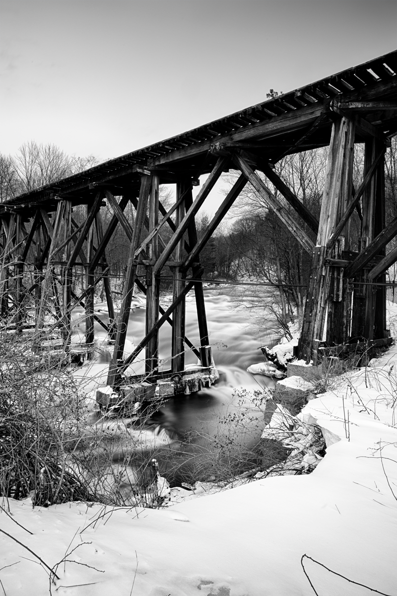 Bridge; February; Franklin; Frozen; Frozen River; Ice Chunks; Ice Floe; JulesBF; Landscape; Nature; New England; New Hampshire; No People; Railroad Bridge; River; Sunset; Tranquil Scene; Trestle Bridge; United States; USA; Winnipesaukee; Winnipesaukee River; Winter, Vertical